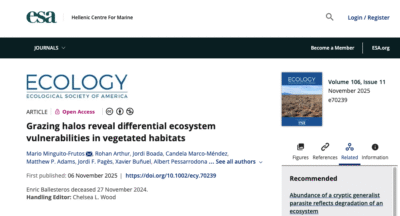 Grazing halos reveal differential ecosystem vulnerabilities in vegetated habitats December 4, 2025 December 4, 2025Publications more