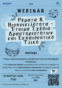 BlueLightS Webinar: Ρέματα & Βιοποικιλότητα – Έτοιμα Σχέδια Δραστηριοτήτων και Εκπαιδευτικό Υλικό – Τετάρτη 18 Μαρτίου στο ΕΛΚΕΘΕ
